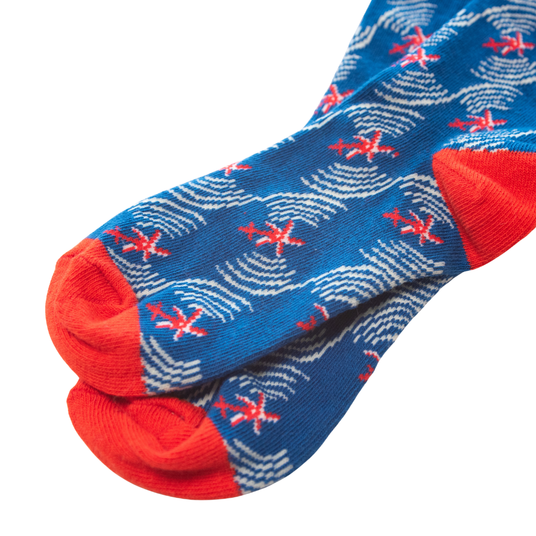 Lift off in style with our new children’s socks, featuring a bold overhead view of the H145 helicopter. In vibrant blue and red, they’re perfect for little adventurers on the go