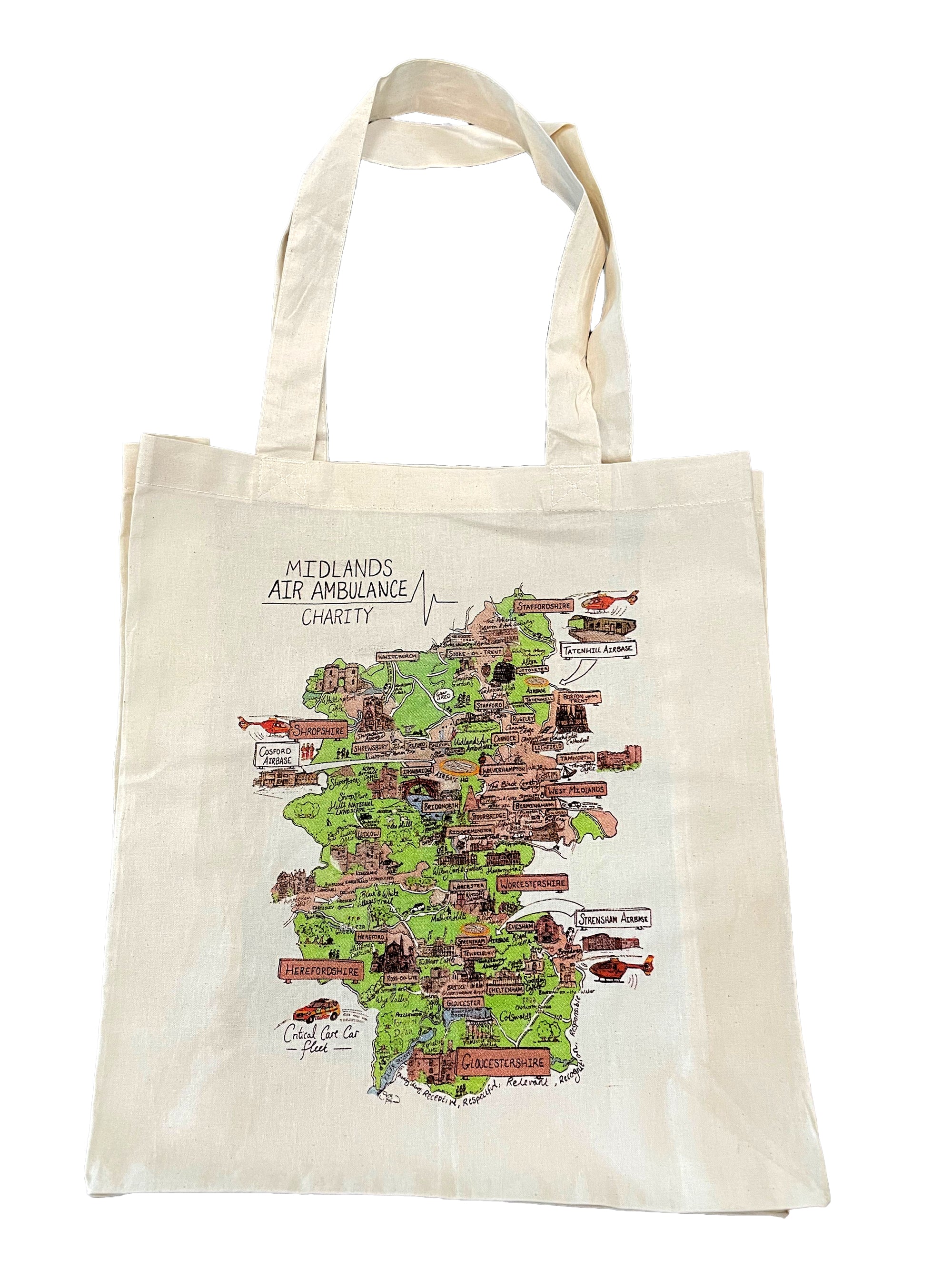 Make a sustainable statement wherever you go with our bag for life, featuring a beautifully hand-drawn map of our six-county region. Durable, practical, and full of character.Bag size 400mm x 420 mm.