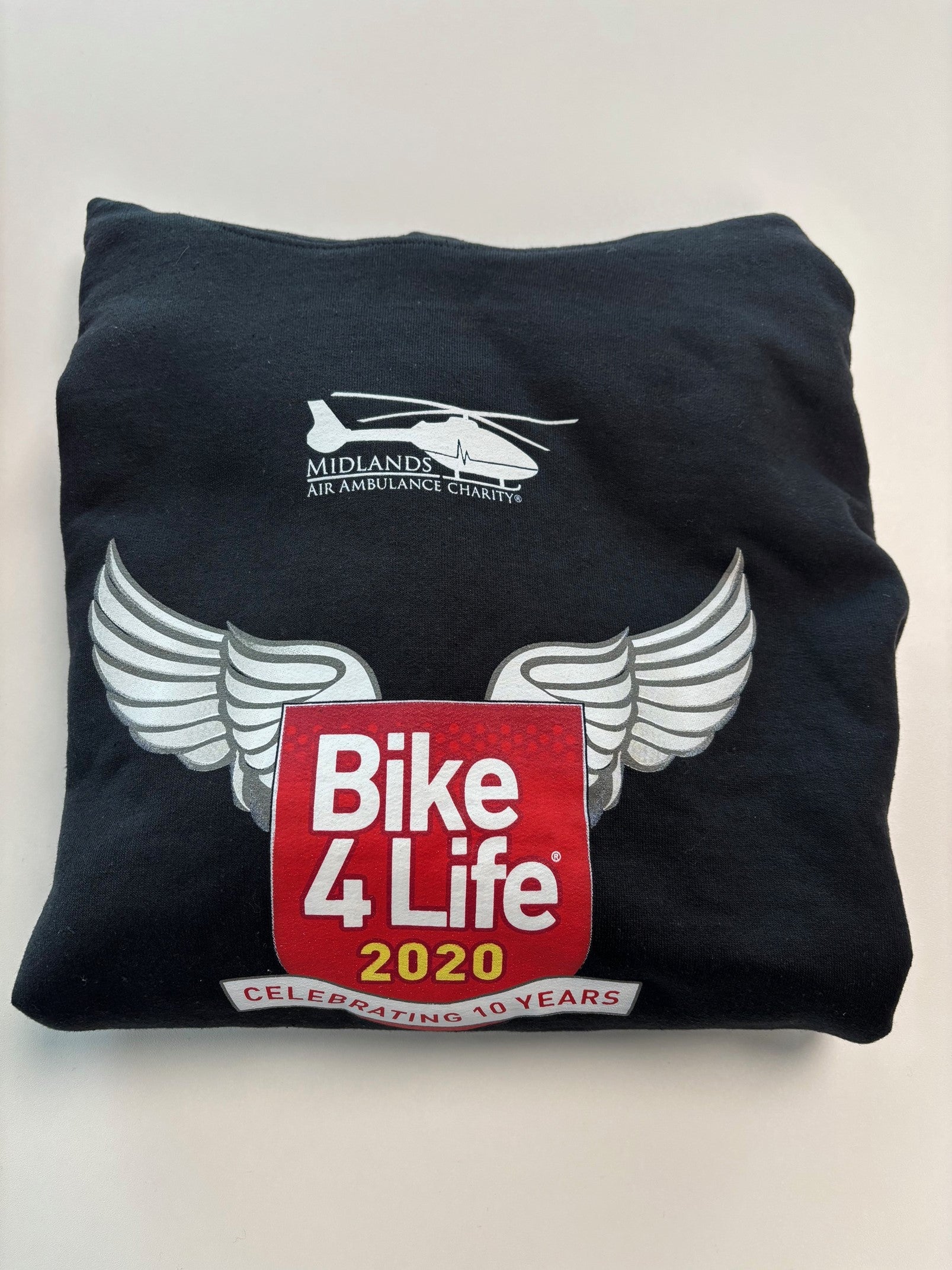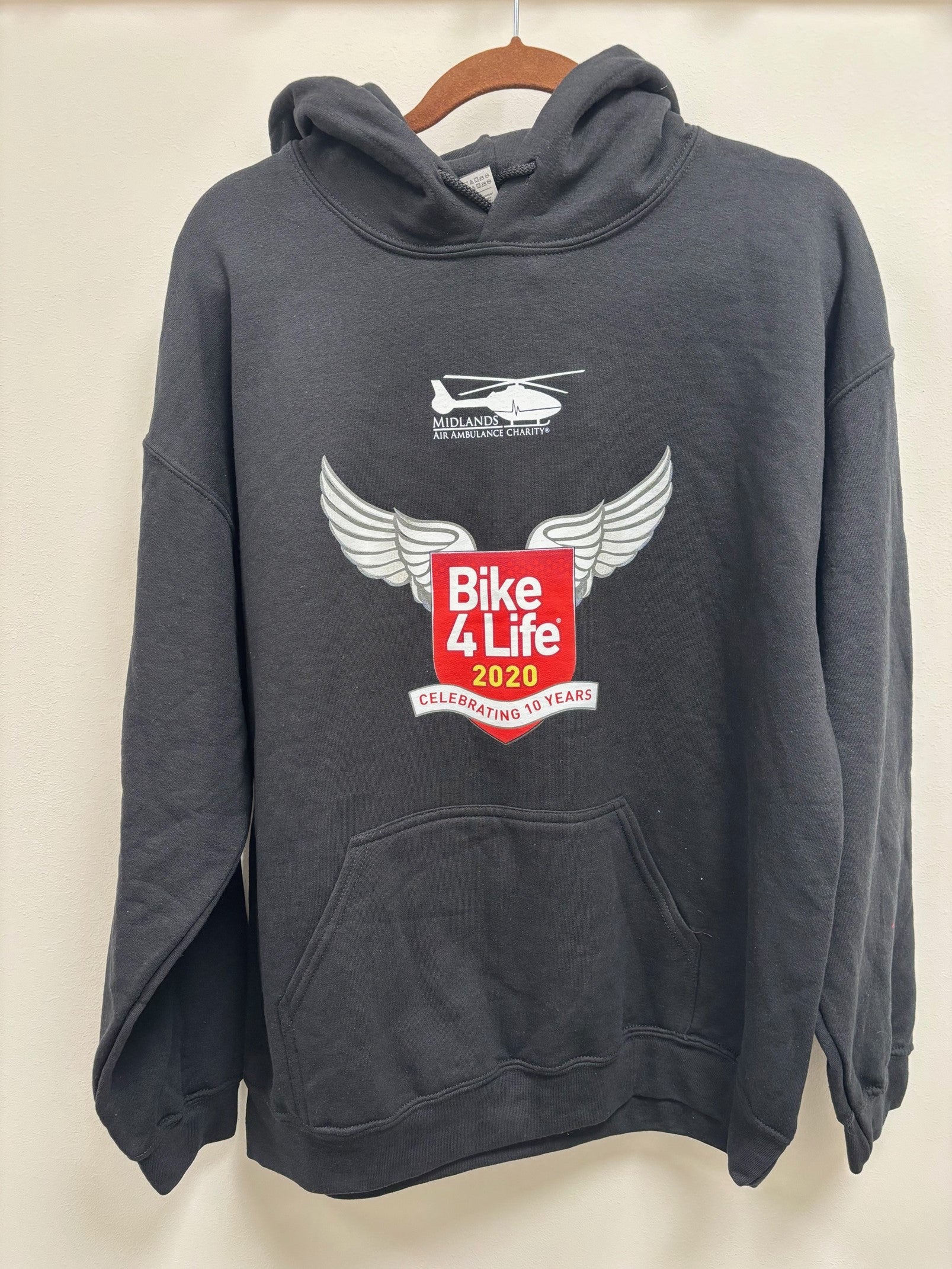 Featuring a bold 10th Anniversary Bike4Life design, this hoodie pays tribute to one of the UK’s biggest charity ride-outs; an event that unites thousands of bikers every year to raise vital funds for Midlands Air Ambulance Charity.